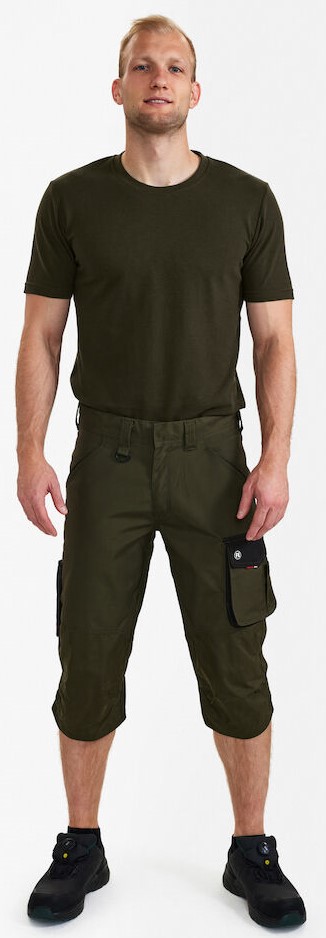 Funktionelle 3-4-Hose mit vielen Details. Optimale Passform, u. a. sorgen ergonomisch geformte Knie und Panel an der Innennaht im Schritt für mehr Bequemlichkeit. Zwei geräumige, schräg sitzende Einschubtaschen sowie zwei Holstertaschen vorne. Schlaufe mit D-Ring (vorne) zur Befestigung einer ID-Karte. Zwei geräumige Gesäßtaschen mit Patte und Klettverschluss. Schenkeltasche mit Reißverschlusstasche fürs Handy, zusätzliche kleine Tasche. Sie ist geräumig und sorgt dank des freihängenden Bodens für mehr Bewegungsfreiheit. Unten verstärkte Zollstocktasche mit zusätzlichen Fächern. Auch die Zollstocktasche hat einen freihängenden Boden. Knieverstärkung/Knietasche mit Klettverschluss unten sowie zwei Einstellmöglichkeiten für Knieschutzkissen. Für Industriewäsche geeignet.