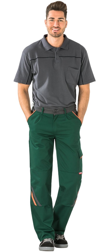 Dieser Artikel ist in Verbindung mit einem PLANAM Kniepolster (Art.-Nummer 9901027) als Knieschutz nach EN 14404 Typ 2, Stufe 1 zertifiziert. 2 eingesetzte Beuteltaschen, 2 aufgesetzte Knietaschen mit farblichen Applikationen, doppelte Maßstabtasche, links Oberschenkeltasche mit Patte und Klettverschluss, Handytasche, Gummizug im Bund, 2 Gesäßtaschen mit Patten, Reißverschluss im Hosenschlitz, Tascheneingriffe und Taschenpatten mit farblichen Biesen abgesetzt.