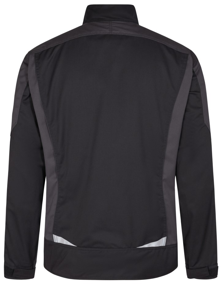 Funktionelle Arbeitsjacke mit vielen Details. Verlängerte Rückenpartie mit Bewegungsfalte. Verdeckter Reißverschlussvorn. Zwei geräumige Einschubtaschen. Zwei Brusttaschen mit Patte – rechts mit Schlaufe und D-Ring zur Befestigung einer ID-Karte und mit zusätzlicher Reißverschlusstasche fürs Handy. Zwei große Innentaschen mit Klettverschluss. Verstellbare Ärmelbündchen. Reflektoren vorne und am Rücken für mehr Sichtbarkeit. Für Industriewäsche geeignet.