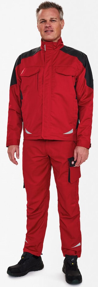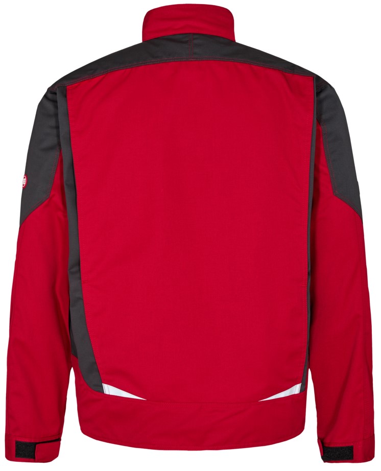 Funktionelle Arbeitsjacke mit vielen Details. Verlängerte Rückenpartie mit Bewegungsfalte. Verdeckter Reißverschlussvorn. Zwei geräumige Einschubtaschen. Zwei Brusttaschen mit Patte – rechts mit Schlaufe und D-Ring zur Befestigung einer ID-Karte und mit zusätzlicher Reißverschlusstasche fürs Handy. Zwei große Innentaschen mit Klettverschluss. Verstellbare Ärmelbündchen. Reflektoren vorne und am Rücken für mehr Sichtbarkeit. Für Industriewäsche geeignet.