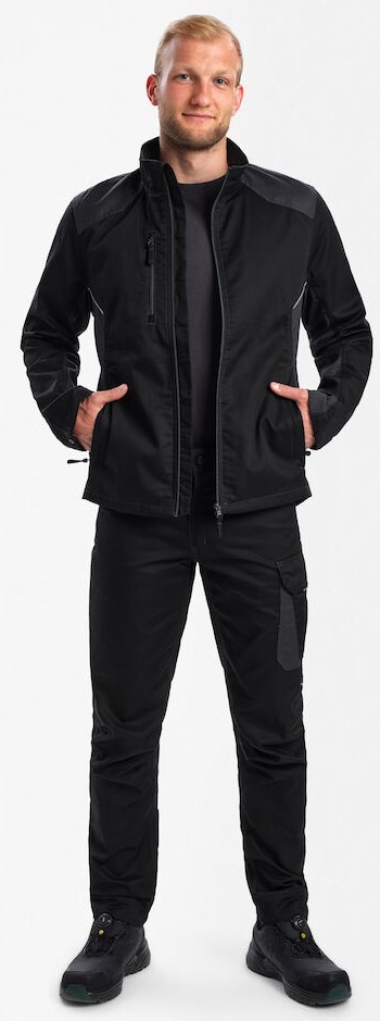 Funktionelle zweifarbige Jacke mit einem Schnitt, bei dem Wert auf eine gute Passform gelegt wird. Die Arbeitsjacke ist aus einem Stoff gefertigt, der bei warmen und kälteren Temperaturen angenehm zu tragen ist. Die Jacke wurde mit Fokus auf die Industrie entwickelt und hat alle notwendigen funktionellen Details sowie zusätzliche Details, die die Arbeitsjacke für andere Branchen geeignet machen. Beispielsweise hat sie zwei geräumige Seitentaschen mit verdeckten Reißverschlüssen und eine Brusttasche mit Reißverschluss. Große Innentasche mit Klettverschluss und Reißverschluss vorne. Verstellbare Manschetten mit Druckknopfverschluss. Reflektierende Details vorne und hinten bieten eine bessere bessere Sichtbarkeit. Die Arbeitsjacke ist so designt, dass sie viel Platz für das Firmenlogo bietet.