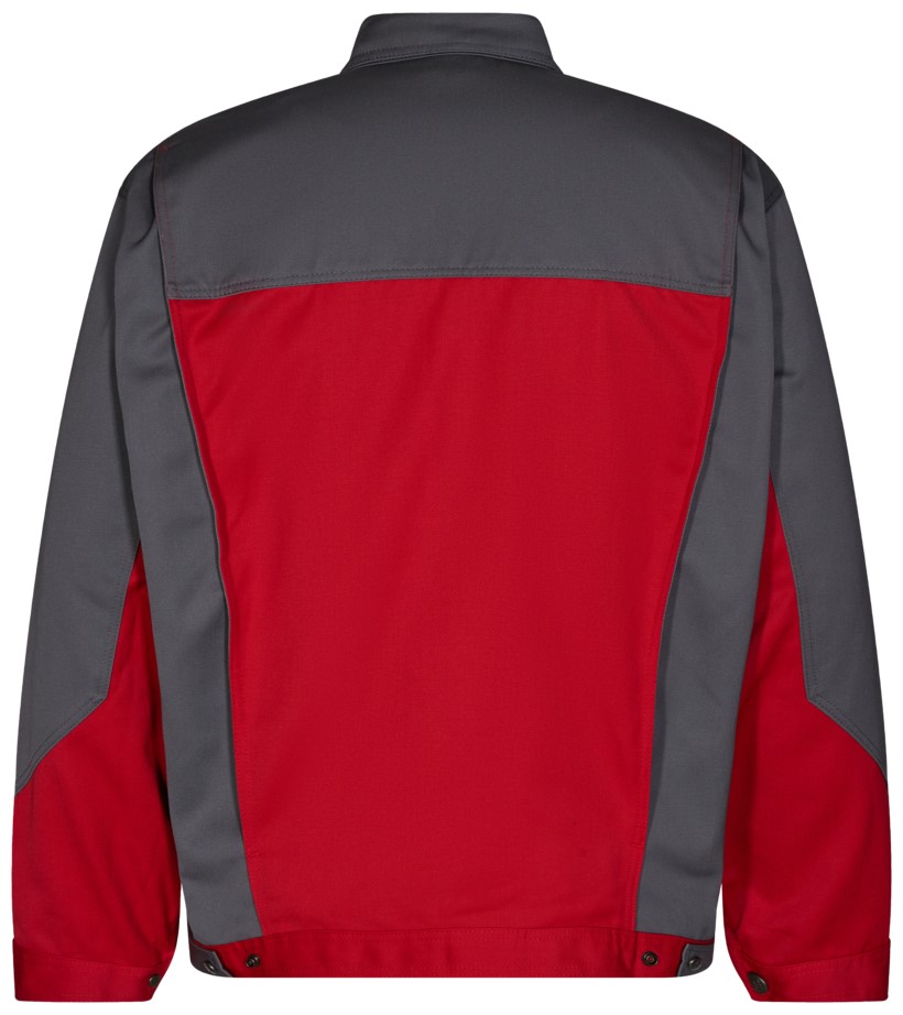 Arbeitsbundjacke mit verdecktem Kunststoffreißverschluss in passendem Farbdesign. Dunkel gefärbte Druckknöpfe. Brusttasche mit Patte und Klettverschluss links. Offene Brusttasche mit verschließbarer Handytasche rechts. Zwei Eingrifftaschen. Dreifach Kappnähte. Innentasche mit Patte. Verstärkte Oberarme. Bund und Manschetten verstellbar. Zwei Dehnfalten im Rücken für mehr Bewegungsfreiheit. Für Industriewäsche geeignet.