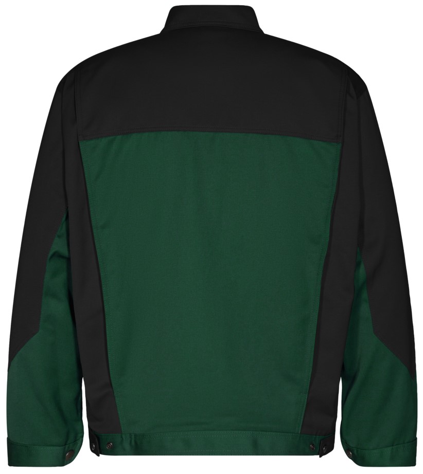 Arbeitsbundjacke mit verdecktem Kunststoffreißverschluss in passendem Farbdesign. Dunkel gefärbte Druckknöpfe. Brusttasche mit Patte und Klettverschluss links. Offene Brusttasche mit verschließbarer Handytasche rechts. Zwei Eingrifftaschen. Dreifach Kappnähte. Innentasche mit Patte. Verstärkte Oberarme. Bund und Manschetten verstellbar. Zwei Dehnfalten im Rücken für mehr Bewegungsfreiheit. Für Industriewäsche geeignet.