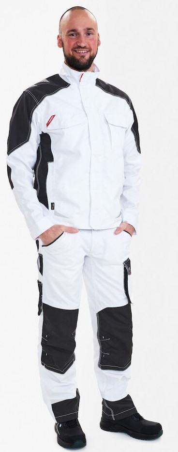 Funktionelle Arbeitsjacke mit vielen Details. Verlängerte Rückenpartie mit Bewegungsfalte. Verdeckter Reißverschluss vorn. Verstärkte Ellbogen. Zwei geräumige Einschubtaschen. Zwei Brusttaschen mit Patte – die rechte mit Schlaufe und D-Ring zur Befestigung einer ID-Karte, die linke mit zusätzlicher Reißverschlusstasche fürs Handy. Zwei große Innentaschen mit Klettverschluss. Verstellbare Ärmelbündchen. Reflexstreifen auf den Schultern sowie vorne und hinten für mehr Sichtbarkeit. Für Industriewäsche geeignet.