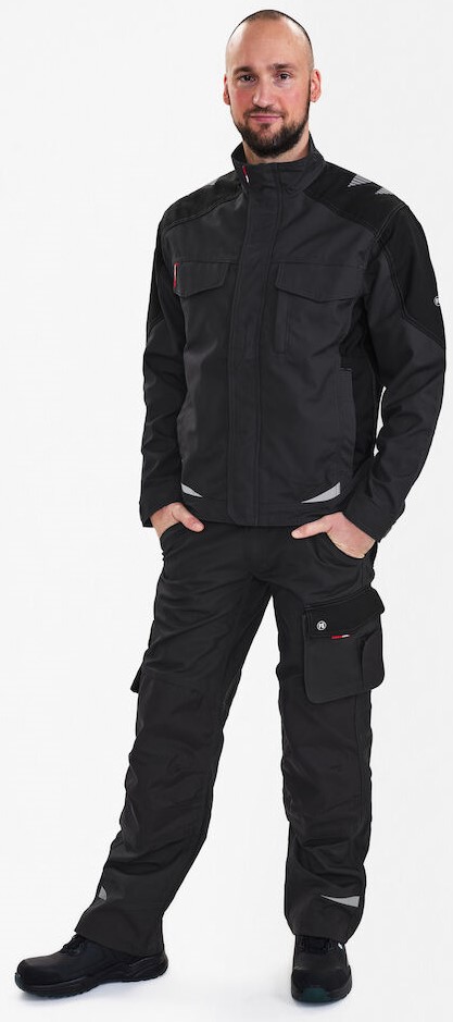 Funktionelle Arbeitsjacke mit vielen Details. Verlängerte Rückenpartie mit Bewegungsfalte. Verdeckter Reißverschluss vorn. Verstärkte Ellbogen. Zwei geräumige Einschubtaschen. Zwei Brusttaschen mit Patte – die rechte mit Schlaufe und D-Ring zur Befestigung einer ID-Karte, die linke mit zusätzlicher Reißverschlusstasche fürs Handy. Zwei große Innentaschen mit Klettverschluss. Verstellbare Ärmelbündchen. Reflexstreifen auf den Schultern sowie vorne und hinten für mehr Sichtbarkeit. Für Industriewäsche geeignet.