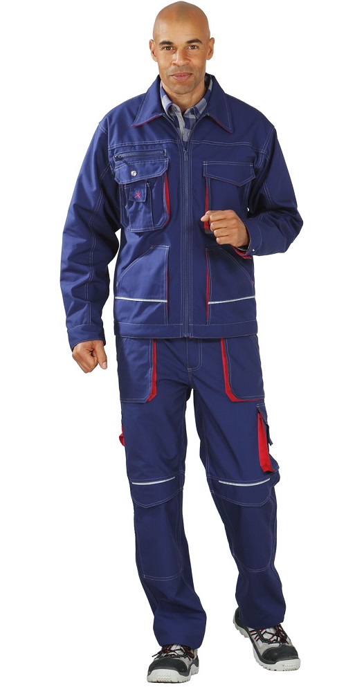 2 aufgesetzte Seitentaschen, 1 Brusttasche links mit Patte und Klettverschluss, doppelte Brusttasche rechts, Handytasche auf der rechten Brust, mit Druckknopf verstellbare Ärmelbündchen, Umlegekragen, Bundweite mit Druckknopf verstellbar, 2 Golffalten im Rücken, Reflexbiesen im Front- und Rückenbereich als Sicherheitsausstattung.