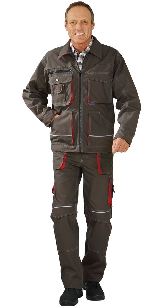 2 aufgesetzte Seitentaschen, 1 Brusttasche links mit Patte und Klettverschluss, doppelte Brusttasche rechts, Handytasche auf der rechten Brust, mit Druckknopf verstellbare Ärmelbündchen, Umlegekragen, Bundweite mit Druckknopf verstellbar, 2 Golffalten im Rücken, Reflexbiesen im Front- und Rückenbereich als Sicherheitsausstattung.