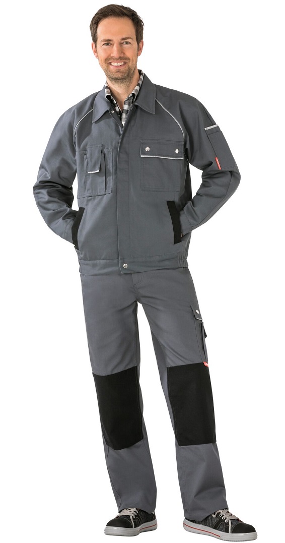 2 eingesetzte Beuteltaschen aus Cordura®, Reflexbiesen am Ärmeleinsatz und an den Taschenpatten, 2 Brusttaschen, links mit Patte und Druckknöpfen, rechts mit zusätzlich aufgesetzter Handytasche, Ärmeltasche links mit aufgedoppelten Stiftfächern, Gummizug im Bund, verdeckte Druckknopfleiste als Frontverschluss, mit Druckknopf verstellbare Ärmelbündchen, Aufhänger im Kragen.