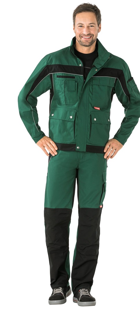 2 aufgesetzte Seitentaschen mit Patte und Druckknöpfen, 1 Brusttasche links mit Patte und Klettverschluss, doppelte Brusttasche rechts, Handytasche auf der rechten Brust, 2 Stiftfächer, mit Druckknopf verstellbare Ärmelbündchen, verdeckter Frontreißverschluss, Stehkragen, Bundweite mit Klettband verstellbar,Ärmeltasche links, Reflexbiesen als Sicherheitsausstattung, 2 Golffalten im Rücken, Lüftungsschlitz im Rücken.