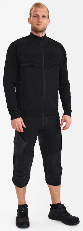 Schicke Strickjacke aus leichtem und flexiblem Material. Hoher Kragen und Reißverschluss vorne. Seitentaschen mit Reißverschluss. Spezielle Strickeffekte sorgen bei dieser Strick cardigan für eine bessere Belüftung.