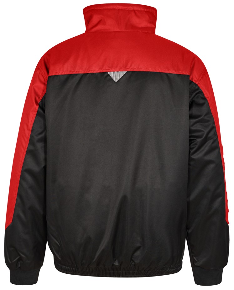 Zweifarbige Pilotjacke mit doppelt verdecktem Kunststoffreißverschluss in passendem Farbdesign. Schultern und Ärmel verstärkt. Dunkel gefärbte Druckknöpfe. Brusttasche links mit seitlichem Eingriff mit Reißverschluss. Offene Brusttasche mit verschließbarer Handytasche rechts. Zwei Eingrifftaschen. Innentasche mit Reißverschluss. Strickbündchen an den Ärmeln. Elastischer Bund. Kragen mit Schnurstopper verstellbar. Faserpelz im Kragen und am Körper. Reißverschluss im hinteren, unteren Rückenbereich, um die Jacke für Transfers oder Embleme leichter handhaben zu können. Wind- und wasserabweisendes Material.