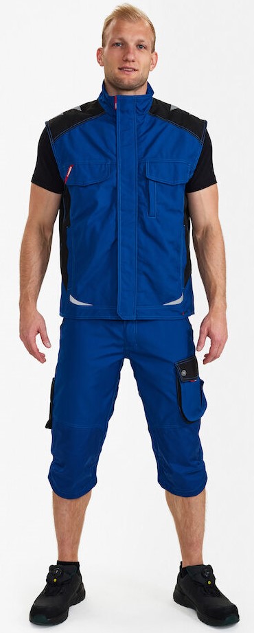 Funktionelle Serviceweste mit vielen Details. Verlängerte Rückenpartie mit Bewegungsfalte. Verdeckter Reißverschluss vorn Zwei geräumige Einschubtaschen. Zwei Brusttasche mit Patte – die rechte mit Schlaufe und D-Ring zur Befestigung einer ID-Karte, die linke mit zusätzlicher Reißverschlusstasche fürs Handy. Zwei große Innentaschen mit Klettverschluss. Reflexstreifen auf den Schultern sowie vorne und hinten für mehr Sichtbarkeit. Für Industriewäsche geeignet.