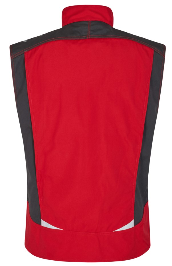 Funktionelle Serviceweste mit vielen Details. Verlängerte Rückenpartie mit Bewegungsfalte. Verdeckter Reißverschluss vorn Zwei geräumige Einschubtaschen. Zwei Brusttasche mit Patte – die rechte mit Schlaufe und D-Ring zur Befestigung einer ID-Karte, die linke mit zusätzlicher Reißverschlusstasche fürs Handy. Zwei große Innentaschen mit Klettverschluss. Reflexstreifen auf den Schultern sowie vorne und hinten für mehr Sichtbarkeit. Für Industriewäsche geeignet.