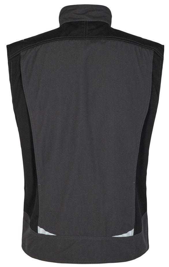 Funktionelle Serviceweste mit vielen Details. Verlängerte Rückenpartie mit Bewegungsfalte. Verdeckter Reißverschluss vorn Zwei geräumige Einschubtaschen. Zwei Brusttasche mit Patte – die rechte mit Schlaufe und D-Ring zur Befestigung einer ID-Karte, die linke mit zusätzlicher Reißverschlusstasche fürs Handy. Zwei große Innentaschen mit Klettverschluss. Reflexstreifen auf den Schultern sowie vorne und hinten für mehr Sichtbarkeit. Für Industriewäsche geeignet.