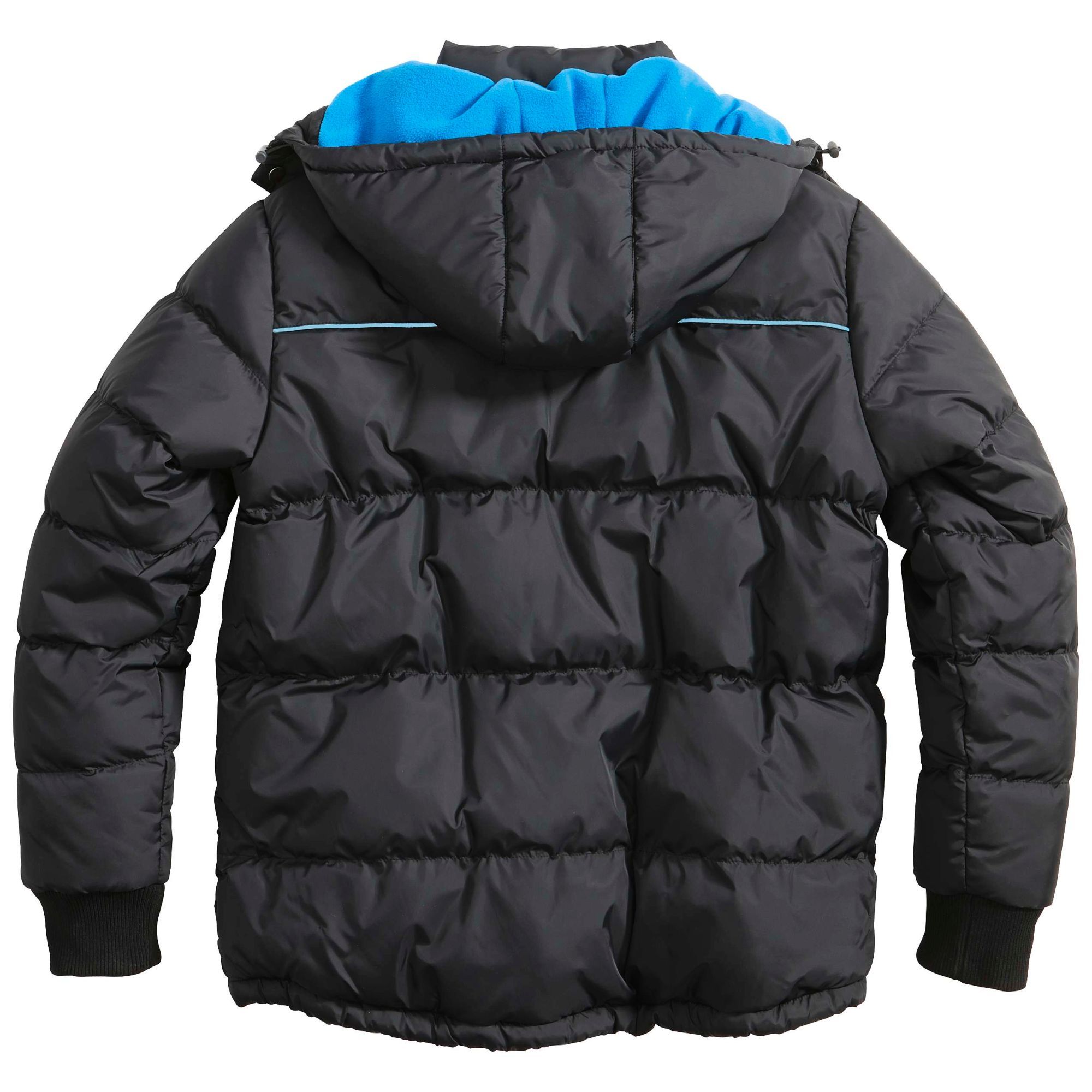 - Besonderheiten: Warme Wattierung, PU-Beschichtung, Futter in Kontrastfarbe, Reflektoren in Blau, abnehmbare