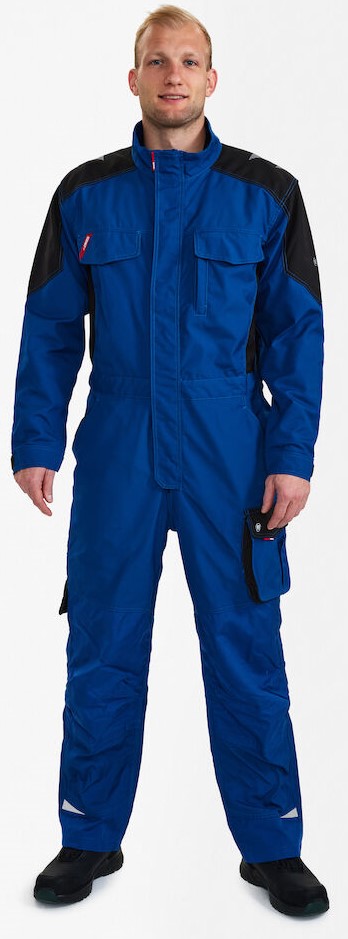 Funktionelle Overall mit vielen Details. Optimale Passform, u. a. sorgen ergonomisch geformte Knie, eine elastische Taille und Panel an der Innennaht im Schritt für mehr Bequemlichkeit. Verdeckter Reißverschluss vorn. Zwei Brusttasche mit Patte – die rechte mit Schlaufe und D-Ring zur Befestigung einer ID-Karte, die linke mit zusätzlicher Reißverschlusstasche fürs Handy. Verstellbare Ärmelbündchen. Zwei geräumige, schräg sitzende Einschubtaschen vorne. Zwei geräumige Gesäßtaschen mit Patte und Klettverschluss. Schenkeltasche mit Reißverschlusstasche und zusätzlicher kleiner Tasche. Sie ist geräumig und sorgt dank des freihängenden Bodens für mehr Bewegungsfreiheit. Unten verstärkte Zollstocktasche mit zusätzlichen Fächern. Auch die Zollstocktasche hat einen freihängenden Boden. Knieverstärkung/Knietasche mit Klettverschluss unten sowie zwei Einstellmöglichkeiten für Knieschutzkissen. Verstärkter Saum der Hosenbeine hinten sowie vorne und Verstärkung an den Ellenbogen für extra hohe Verschleißfestigkeit. Reflexstreifen an Schultern, Taille und Knien und unten an den Hosenbeinen für bessere Sichtbarkeit. Für Industriewäsche geeignet.
