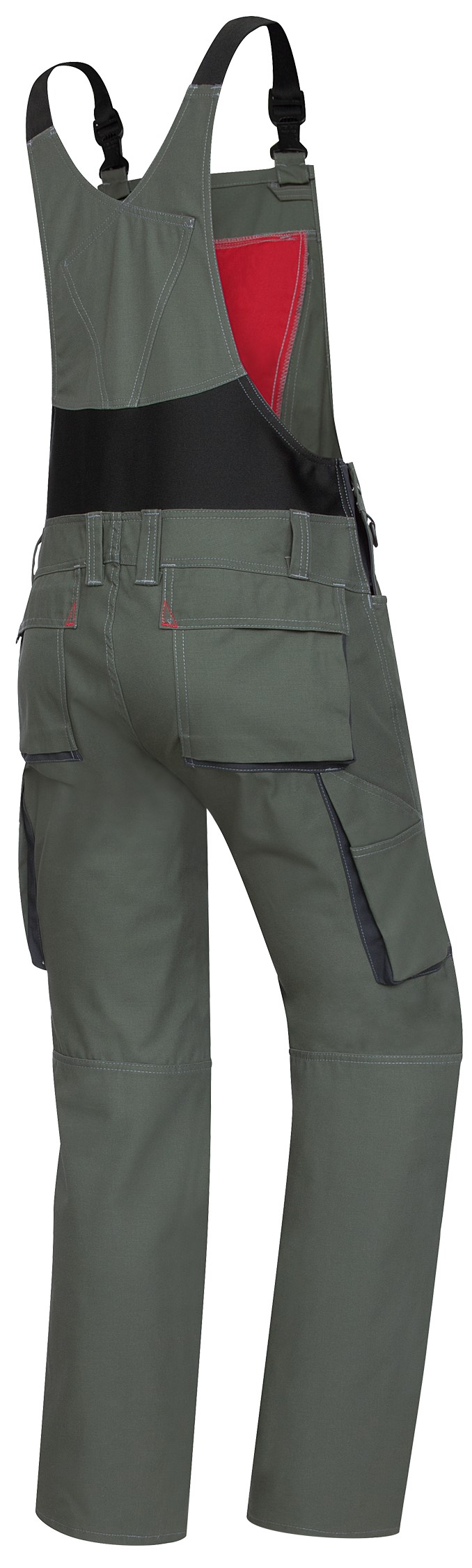 - Stretchträger mit Kunststoff-Steckschnallen, doppelte Latztasche mit Reißverschluss und Taschenklappe, 2 Stifttaschen, hochgezogener Rücken mit Stretcheinsatz für mehr Bewegungsfreiheit, regulierbare Bundweite