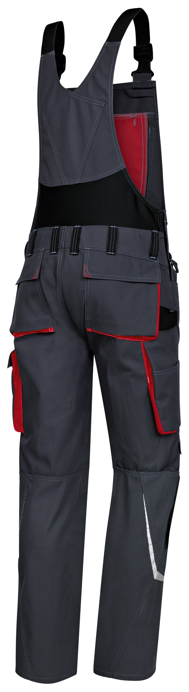 - Stretchträger mit Kunststoff-Steckschnallen, doppelte Latztasche mit Reißverschluss und Taschenklappe, 2 Stifttaschen, hochgezogener Rücken mit Stretcheinsatz für mehr Bewegungsfreiheit, regulierbare Bundweite
