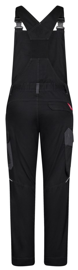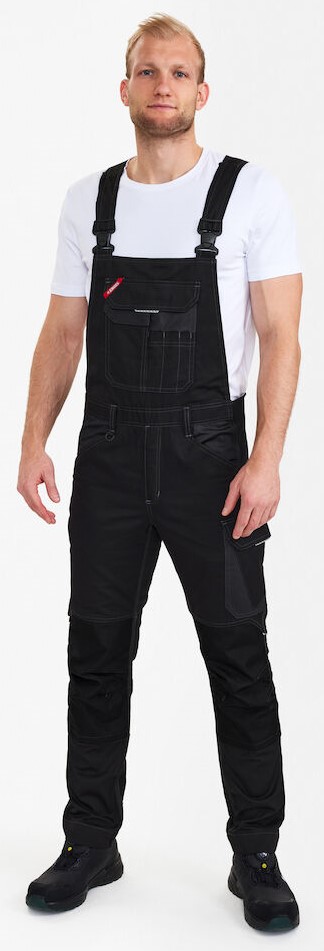 Zweifarbige Latzhose mit modernem Schnitt, bei der viel Wert auf eine gute Passform gelegt wurde. Die Latzhose ist aus einem Stoff gefertigt, der angenehm zu tragen ist, sowohl bei warmen als auch bei kälteren Temperaturen. Die Latzhose hat vorgeformte Knie für maximale Bewegungsfreiheit. Der praktische Gummizug hinten in der Taille sorgt zusammen mit dem breiten dehnbaren Rückenteil und den verstellbaren Trägern für eine besonders gute Passform. Man braucht sich nicht zu sorgen, dass sich die Arbeitskleidung z. B. beim Ausstrecken oder beim Bücken „teilt“. Bei der Entwicklung der Latzhose stand die Industrie im Mittelpunkt. Sie verfügt über alle erforderlichen funktionellen Details sowie über zusätzliche Details, die sie auch für andere Branchen geeignet macht. Die Latzhose hat besonders viele funktionelle Taschen, beispielsweise eine praktische Latztasche mit separater Handytasche sowie einen Stifthalter.Zwei geräumige schräge Taschen vorne. Gesäßtasche mit Klettverschluss. Auf der linken Seite befindet sich eine Oberschenkeltasche mit Patte und separater Handytasche. Auf der rechten Seite befindet sich eine Zollstocktasche mit lose hängendem Boden und Verstärkung. Die Latzhose hat zwei Einstellmöglichkeiten für das Einsetzen von Kniepolstern und eine zusätzliche Verstärkung an den Knien. Für eine bessere Sichtbarkeit und Sicherheit hat die Latzhose funktionelle reflektierende Details vorne und hinten. Die Latzhose hat einen besonders breiten Saum unten, der einfach ausgelassen werden kann, wenn zusätzliche Beinlänge erforderlich ist. Um die Hose zu verlängern, muss lediglich eine Naht aufgetrennt werden. Das Hosenbein ist trotzdem noch gesäumt.