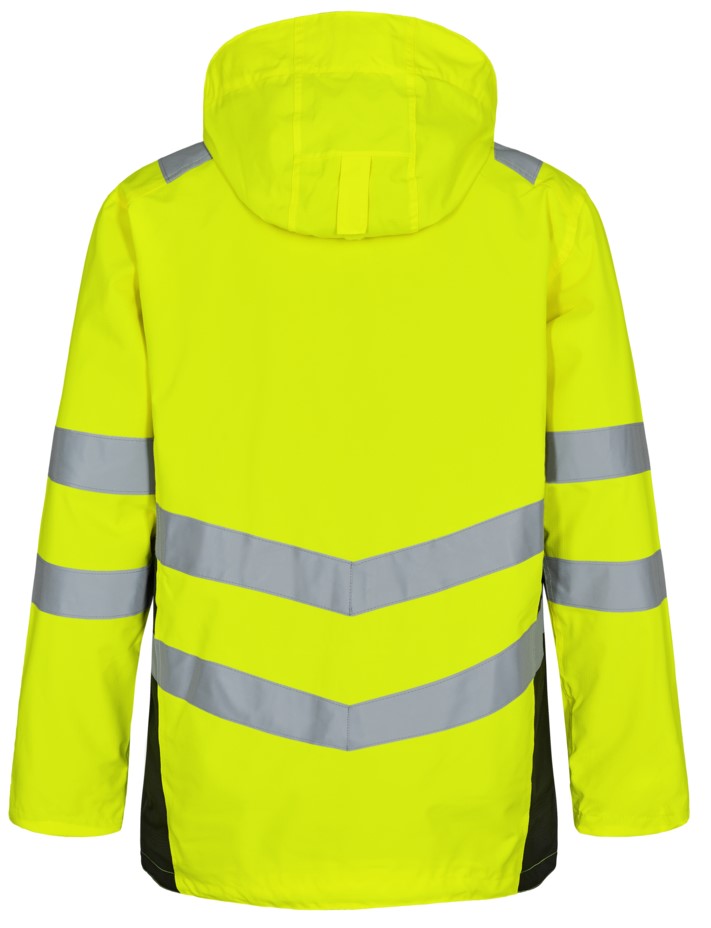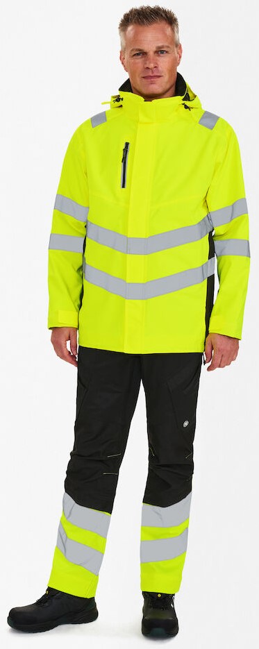 Fluoreszierender, atmungsaktiver sowie wasser- und winddichter Shellparka mit modernem Schnitt und verschweißten Nähten. Der Parka hat einen hohen Kragen, doppelte Knopfleiste mit Reißverschluss sowie Klettverschluss vorne. Kombinierbar mit den Modellen 1192-236, 1159-158 und 5159-158, die alle Zip-in-Details haben. Zwei geräumige Seitentaschen und Brusttasche mit Reißverschluss sowie große Innentaschen mit Klettverschluss. Abnehmbare, verstellbare Kapuze mit ausreichend Platz für den Arbeitshelm. Verstellbare Manschetten. Reißverschluss im Futter, der sich für Aufdruck eignet. Reflexstreifen über der Schulterpartie sowie rund um Ärmel und Taille. Bekleidungsklasse 3. Getestet nach 50 Wäschen.