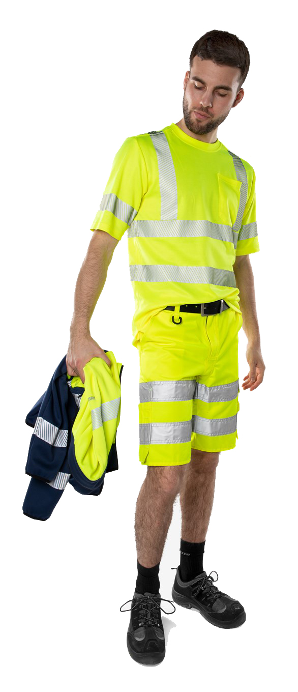 Warnschutz-Shorts aus robustem Twill-Material. Geeignet für Industriewäsche.