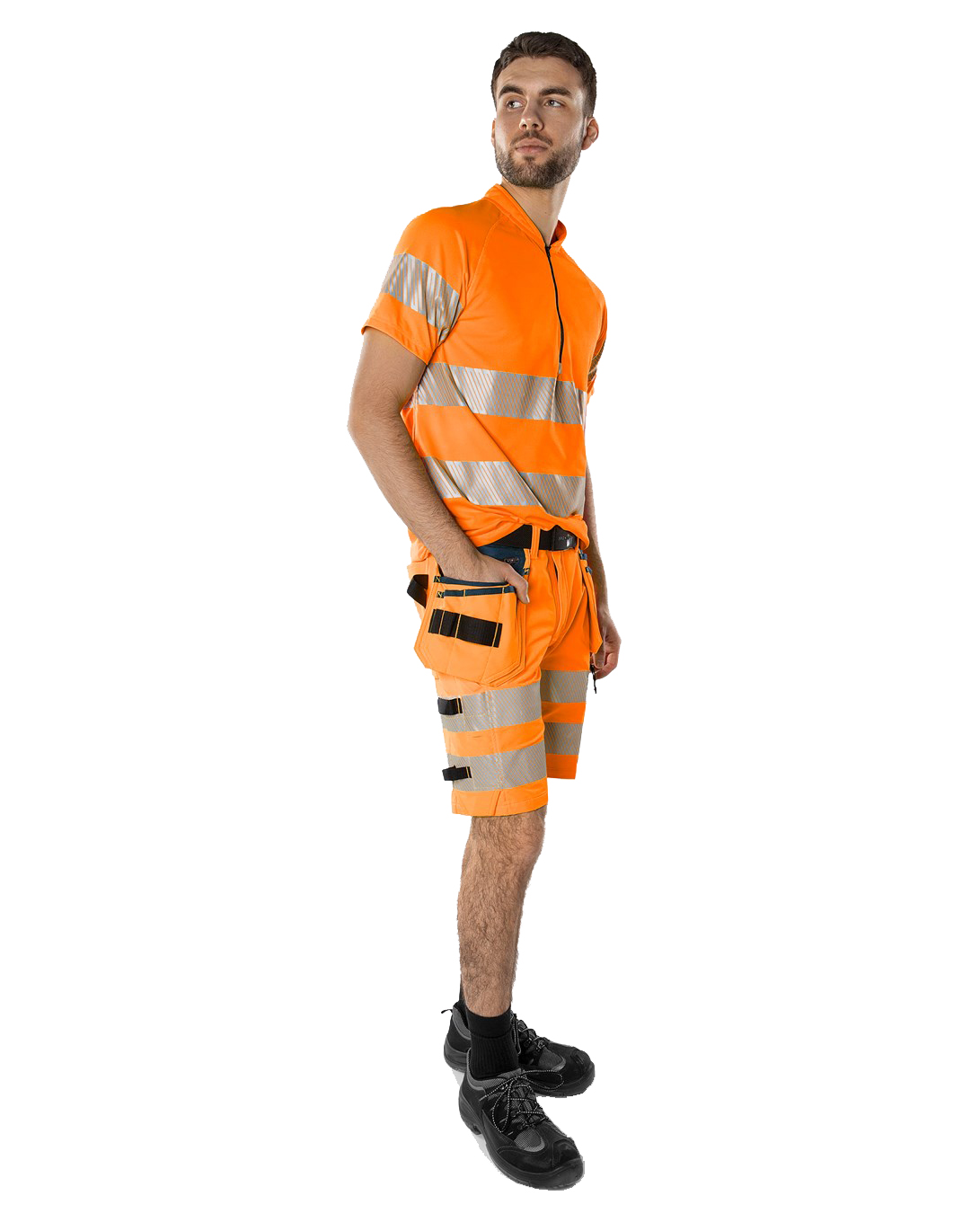 Nachhaltige, gut sichtbare Handwerker-Stretch-Shorts aus biobasierten und recycelten Materialien. Vollständiger 4-Wege-Stretch und zusätzliche Stretcheinsätze am Bund bieten hervorragenden Komfort und Bewegungsfreiheit. Mit EPD (Environmental Product Declaration). Konzept: Stiby