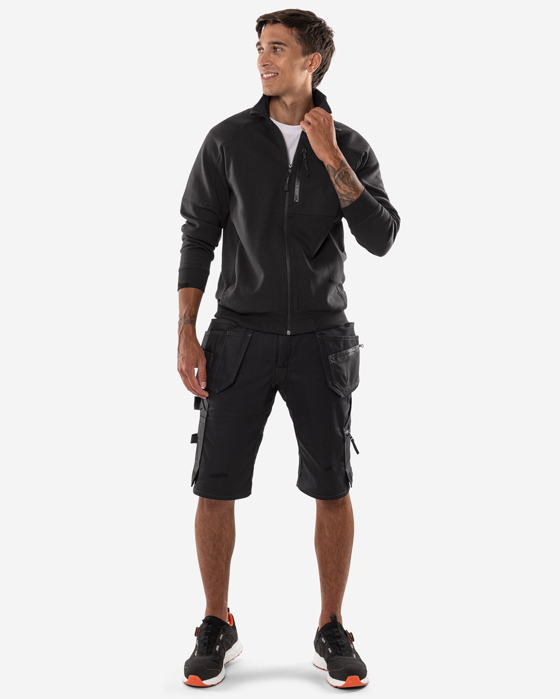 Handwerkershorts mit Einsätzen aus 4-Wege-Stretchmaterial. Aus leichtem und strapazierfähigem Material mit mechanischem Stretch, teilweise aus recyceltem Polyester. Bequeme Arbeitsshorts mit allen notwendigen Funktionen und Eigenschaften. Konzept: Alnaryd