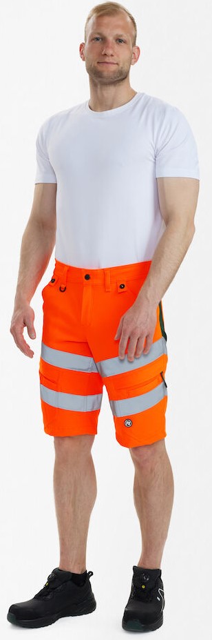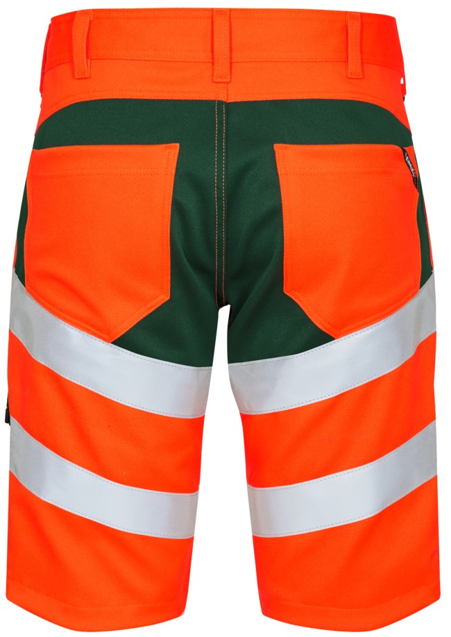 Dehnbare, funktionelle und fluoreszierende Shorts im modernen Design. Optimale Passform. Der dehnbare Stoff sorgt für optimale Bewegungsfreiheit und Komfort. D-Ring vorne für die Befestigung von z. B. Ausweisen. Zwei geräumige Schrägtaschen vorne. Zwei Gesäßtaschen. Zwei Schenkeltaschen mit Reißverschluss. Die linke Schenkeltasche hat eine zusätzliche Handytasche. Die rechte Schenkeltasche hat eine aufgesetzte verstärkte Zollstocktasche mit zusätzlichen Unterteilungen. Bekleidungsklasse 1. Nach 50 mal Waschen getestet.