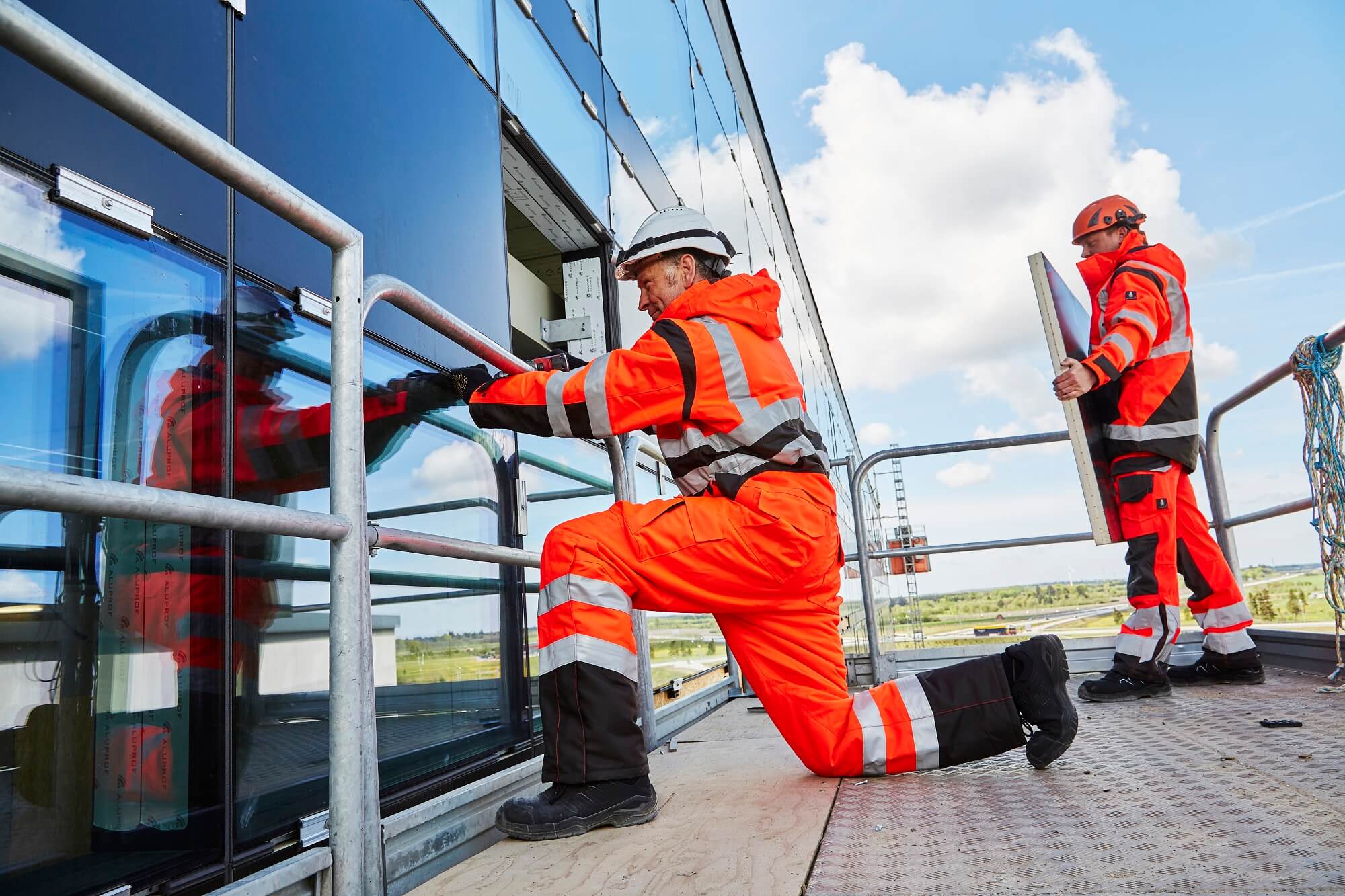 - Knietaschen aus strapazierfähigem CORDURA® (500 D), höhenregulierbar und mit Patte sowie Eingriff von oben