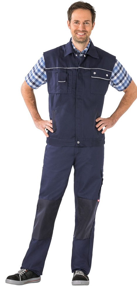 2 eingesetzte Beuteltaschen aus Cordura®, Reflexbiesen am Schultersattel und an den Taschenpatten, 2 Brusttaschen, links mit Patte und Druckknöpfen, rechts mit zusätzlich aufgesetzter Handytasche, Gummizug im Bund, verdeckte Druckknopfleiste als Frontverschluss, Aufhänger im Kragen.