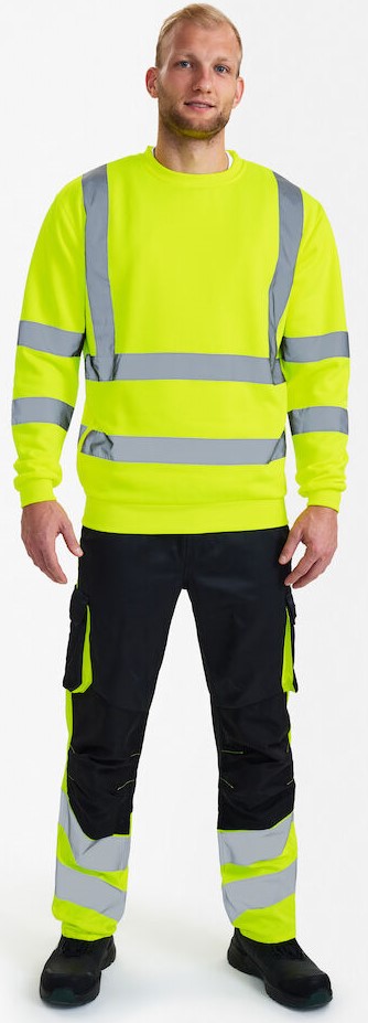Funktionelles und schickes fluoreszierendes Sweatshirt. Angeraute Innenseite, die es weich und bequem macht. Rippstrick an Halsausschnitt, Ärmeln und Saum. Aufgenähte Reflexstreifen über der Schulterpartie sowie rund um Ärmel und Taille. Bekleidungsklasse 3. Getestet nach 25 Wäschen.