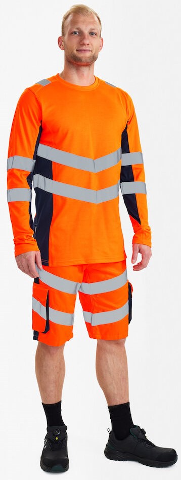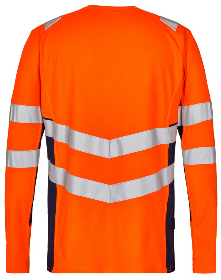 Bequemes und schickes, langärmeliges T-Shirt mit Warnschutzfunktion im modernen Design. Das T-Shirt besteht aus bequemem Pikee-Stoff mit Baumwolle auf der Innenseite für mehr Komfort. Rippstrick am Halsausschnitt. Reflexstreifen an der Schulterpartie sowie rund um Ärmel und Taille. Bekleidungsklasse 2. Nach 25 mal Waschen getestet.