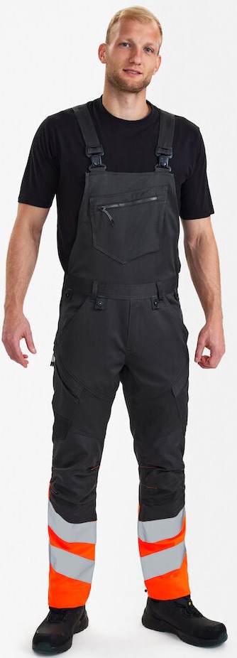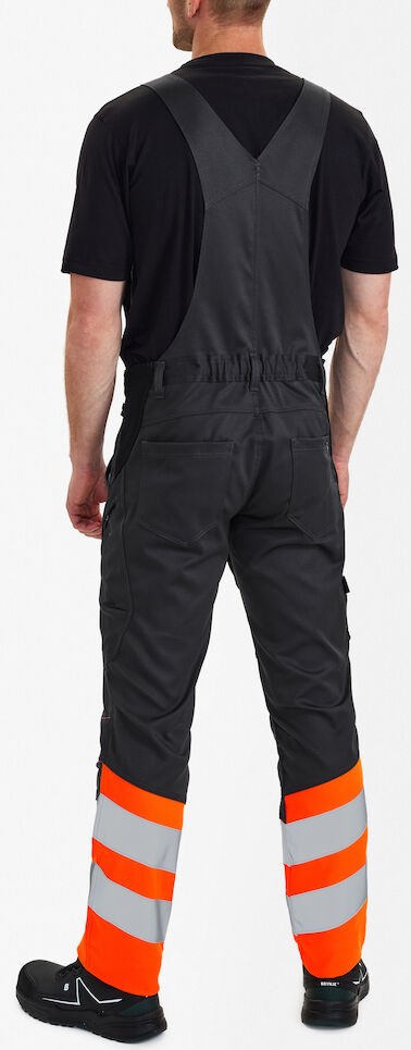 Dehnbare und funktionelle fluoreszierende Latzhose im modernen Design. Der dehnbare Stoff sorgt für optimale Bewegungsfreiheit und Komfort. Optimale Passform mit u. a. ergonomisch geformtem Kniebereich. Hoch geschnittenes Rückenteil und Rippstrickeinsätze an den Seiten sorgen für optimale Passform und Tragekomfort. Verstellbare Träger. Latztasche mit Reißverschluss. Latzinnentasche mit Reißverschluss. Zwei Gesäßtaschen. Zwei Schenkeltaschen mit Reißverschluss. Die linke Schenkeltasche hat eine zusätzliche Handytasche. Die rechte Schenkeltasche hat eine aufgesetzte Zollstocktasche mit zusätzlichen Unterteilungen. D-Ring an der Latztasche für die Befestigung von z. B. Ausweisen. Knieverstärkung/Knietasche mit Klettverschluss unten und besteht aus CORDURA®-Material. Breiter Saum unten, der ausgelassen werden kann, wenn zusätzliche Beinlänge erforderlich ist. Um die Hose zu verlängern, muss lediglich eine Naht aufgetrennt werden. Das Hosenbein ist trotzdem noch gesäumt. Bekleidungsklasse 2. Nach 50 mal Waschen getestet