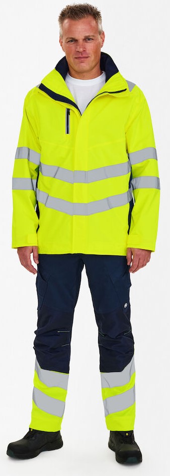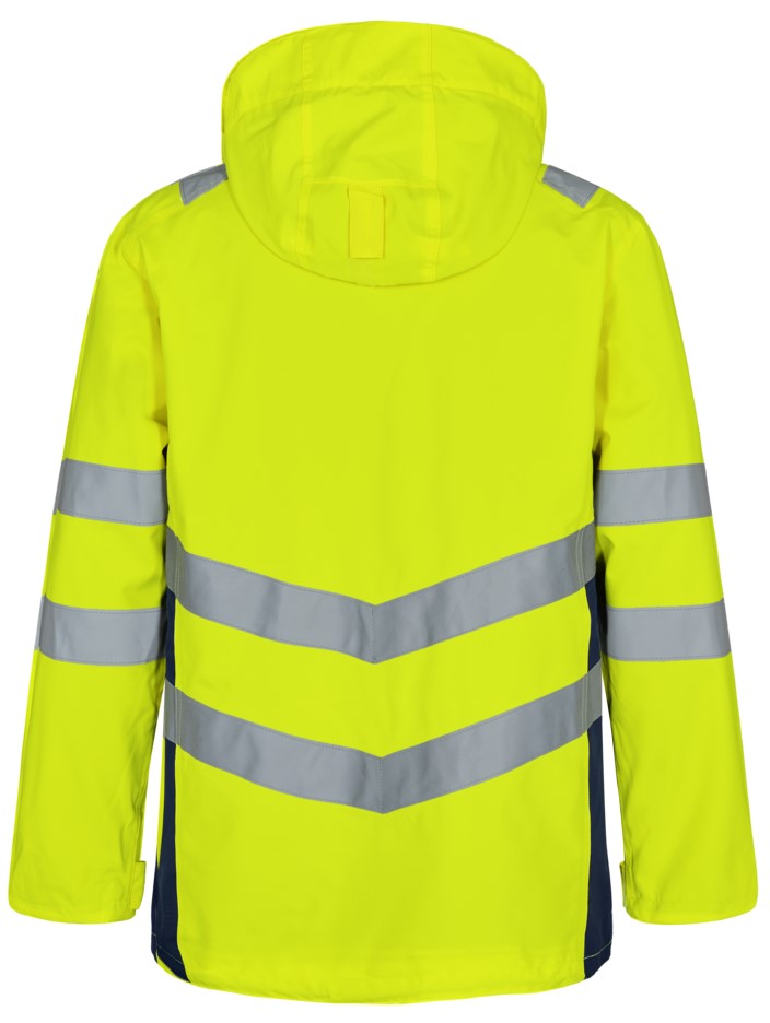 Fluoreszierender, atmungsaktiver sowie wasser- und winddichter Shellparka mit modernem Schnitt und verschweißten Nähten. Der Parka hat einen hohen Kragen, doppelte Knopfleiste mit Reißverschluss sowie Klettverschluss vorne. Kombinierbar mit den Modellen 1192-236, 1159-158 und 5159-158, die alle Zip-in-Details haben. Zwei geräumige Seitentaschen und Brusttasche mit Reißverschluss sowie große Innentaschen mit Klettverschluss. Abnehmbare, verstellbare Kapuze mit ausreichend Platz für den Arbeitshelm. Verstellbare Manschetten. Reißverschluss im Futter, der sich für Aufdruck eignet. Reflexstreifen über der Schulterpartie sowie rund um Ärmel und Taille. Bekleidungsklasse 3. Getestet nach 50 Wäschen.