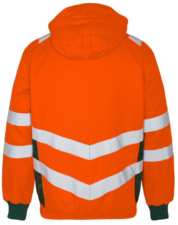 Fluoreszierende, wind- und wasserabweisende Pilotenjacke mit modernem Schnitt. Hoher Kragen mit Fleece innen. Doppelte Knopfleiste mit Reißverschluss sowie Klettverschluss vorne. Zwei geräumige Seitentaschen sowie Brusttasche mit Reißverschluss. Zwei Innentaschen, eine davon mit Reißverschluss. Abnehmbare, verstellbare Kapuze mit ausreichend Platz für den Arbeitshelm. Elastischer Saum unten und Rippstrick am Ärmelabschluss. Reißverschluss im Futter, der sich für Aufdruck/Stickerei eignet. Reflexstreifen über der Schulterpartie sowie rund um Ärmel und Taille. Bekleidungsklasse 3. Getestet nach 50 Wäschen.