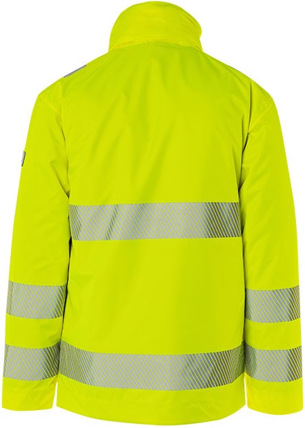 - 2 Reflexstreifen an Rumpf und Ärmel umlaufend (7cm breit), zusätzliche Reflexstreifen über den Schultern (5cm breit)