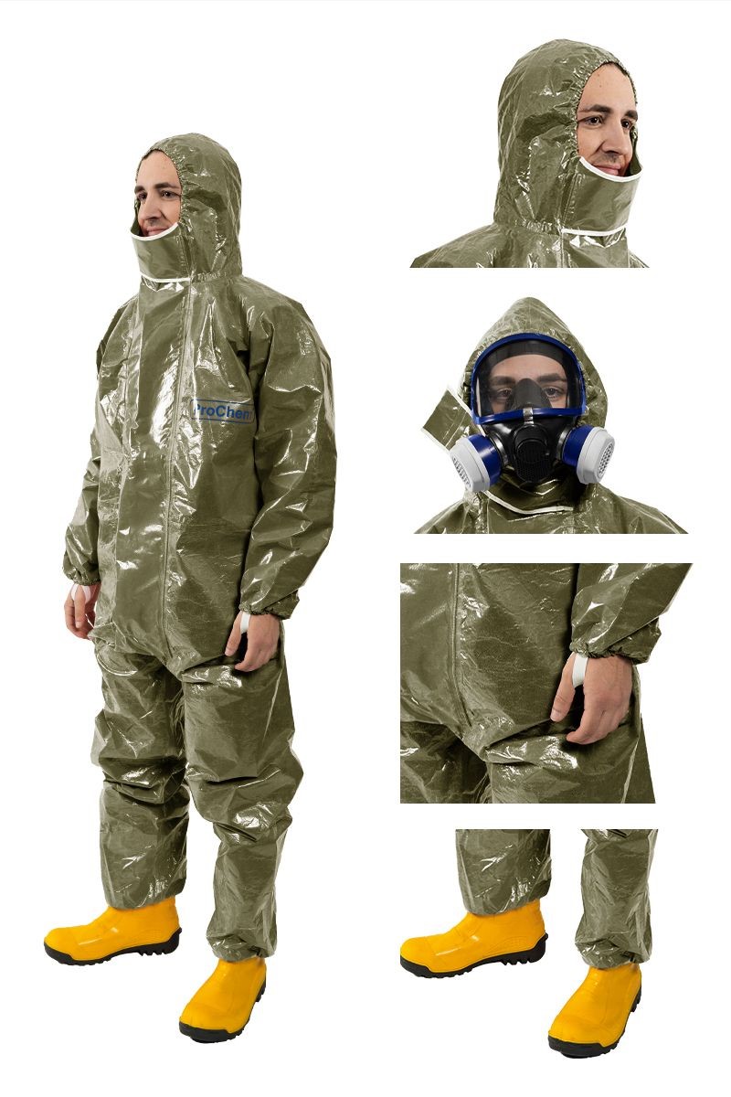 Der ProChem® I wird vornehmlich in der Industrie- und Tankreinigung, bei Inspektionsarbeiten und bei Einsätzen von Feuerwehren und Rettungskräften verwendet. Gummizüge an Ärmeln, Beinen und Kapuze sowie ein Taillengummi sorgen für eine optimale Passform und der großzügig geschnittene Schrittbereich für optimale Bewegungsfreiheit. Die ergonomische Kapuze und die erhöhte doppelte Abdeckblende mit Klettverschluss über dem Reißverschluss bis zum Kinn bieten zusätzlichen Schutz. Elastische Daumenschlaufen verhindern das Hochrutschen der Ärmel bei Überkopfarbeiten.