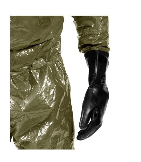 Fest angearbeitete anatomische KCL Butoject 898 Butylhandschuhe, welche auch bei Kälte hochflexibel sind und gute Ozon-, UV- und Temperaturbeständigkeit bieten, runden den Anzug ab. Der Handschuh ist gasundurchlässig und beständig gegen viele Säuren, Laugen, Lösungen, Alkohole, Ester, Weichmacher und Ketone.