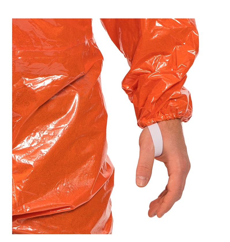 Hergestellt wird der Anzug aus Tychem F, selbiges ist ein leichtes, widerstandsfähiges Material und bietet eine hohe Barriere gegen die Permeation einer Vielzahl von Chemikalien und schützt den Träger vor zahlreichen organischen und hochkonzentrierten anorganischen Chemikalien. Antistatisch ausgerüstet ist es ebenfalls.