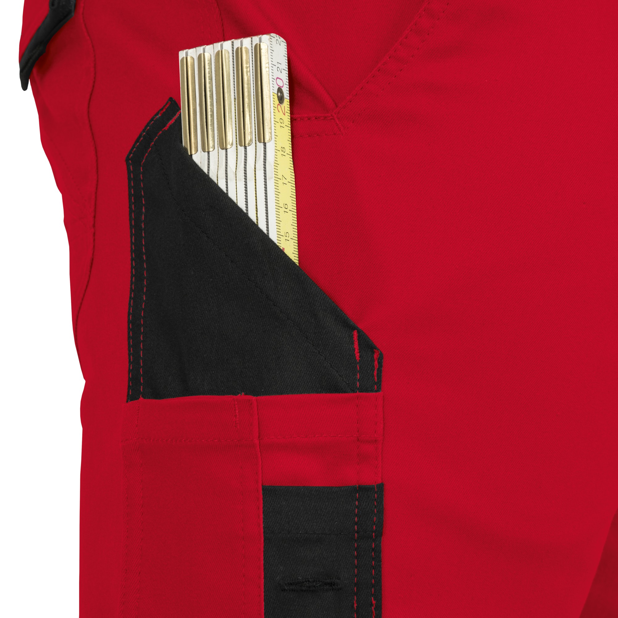 Double ruler pocket including 4 pen compartments on the right leg