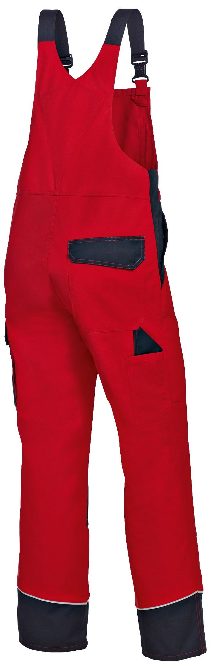 - high back, double ruler pocket, 1 back pocket closable with flap, reflective piping, knee pad pockets