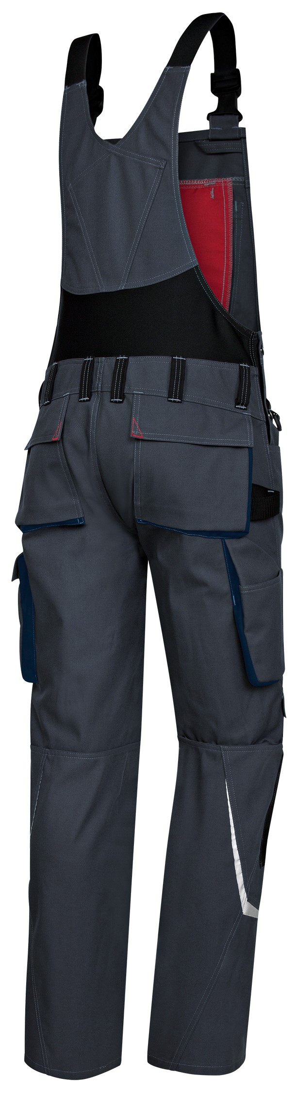 Made for you: knee insert pockets made of Cordura® for knee pads, high back with stretch insert for more mobility, better visibility thanks to reflective elements on the leg, normal fit