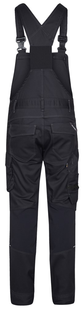 Stretchy, functional dungarees with a slim fit and many practical details. Ergonomically shaped knees and panel on the inseam for even more comfort. The stretch fabric makes the trousers comfortable, while inserts made of extremely stretchy, breathable material in the back of the knees and inseam gusset ensure extra comfort. Elasticated sides for a better fit. Wide, elasticated back and adjustable straps. Zippered pocket on the bib and outside pocket on the bib with flap. The outer pocket on the bib has compartments (e.g. for pens). There is a loop with a D-ring under the pocket flap for attaching an ID card. Buttons for easy attachment of holster pockets (9360-307) Two spacious, slanted slit pockets at the front. Two back pockets with flap. Cell phone pocket with flap on the right thigh. Left thigh pocket with flap. The thigh pocket has an additional zippered compartment. Reinforced folding rule pocket with additional compartments and tool loops. Thigh pocket and ruler pocket with fre