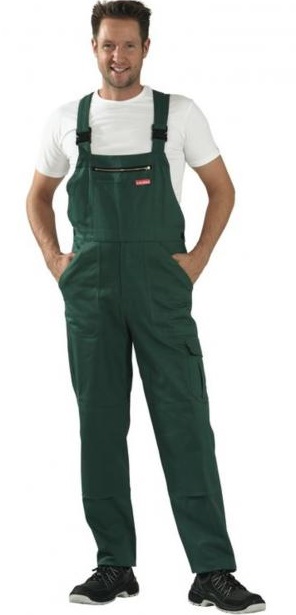 Comfortable cut, complete equipment! This article, in conjunction with a knee PLANAMpad (Art. No. 9901027), is certified as knee protection according to EN 14404 Type 2, Level 1. Bib with brass zipper, additional patch bib pocket, 2 reinforced patch front pockets, 1 back pocket and 1 ruler pocket with adjustable side slits, thigh pocket left, knee pad pocket, fly with zipper, raised back with solidly constructed elastic intermediate part, safety buckles on the straps.