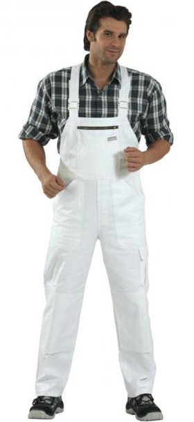 Comfortable cut, complete equipment! This article, in conjunction with a knee PLANAMpad (Art. No. 9901027), is certified as knee protection according to EN 14404 Type 2, Level 1. Bib with brass zipper, additional patch bib pocket, 2 reinforced patch front pockets, 1 back pocket and 1 ruler pocket with adjustable side slits, thigh pocket left, knee pad pocket, fly with zipper, raised back with solidly constructed elastic intermediate part, safety buckles on the straps.