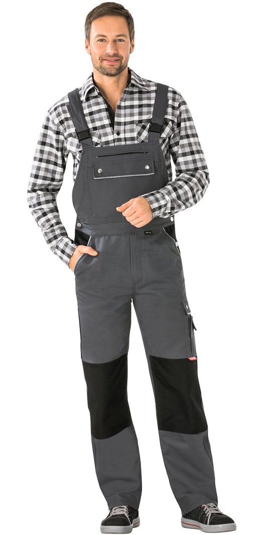 This article, in conjunction with a knee PLANAMpad (Art. No. 9901027), is certified as knee protection according to EN 14404 Type 2, Level 1. Knee pockets made of Cordura®, 2 set-in pouch pockets made of Cordura®, double ruler pocket made of Cordura® on the right, reflective piping on pocket openings and pocket flaps, thigh pocket on the left with flap and press studs, mobile phone pocket on top, double bib pocket, 1 with flap and press studs and 1 with zip, elasticated waistband, 1 reinforced hip pocket on the right, waistband width adjustment with jeans button, zip in trouser fly, raised back with cross straps, straps with elasticated elastic band insert, safety buckle on the straps.