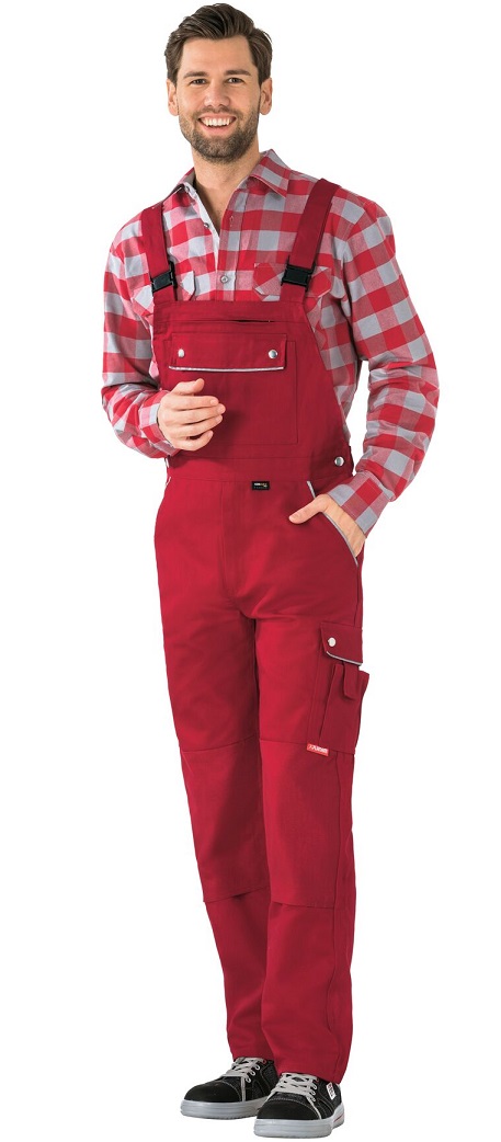 This article, in conjunction with a knee PLANAMpad (Art. No. 9901027), is certified as knee protection according to EN 14404 Type 2, Level 1. Knee pockets made of Cordura®, 2 set-in pouch pockets made of Cordura®, double ruler pocket made of Cordura® on the right, reflective piping on pocket openings and pocket flaps, thigh pocket on the left with flap and press studs, mobile phone pocket on top, double bib pocket, 1 with flap and press studs and 1 with zip, elasticated waistband, 1 reinforced hip pocket on the right, waistband width adjustment with jeans button, zip in trouser fly, raised back with cross straps, straps with elasticated elastic band insert, safety buckle on the straps.