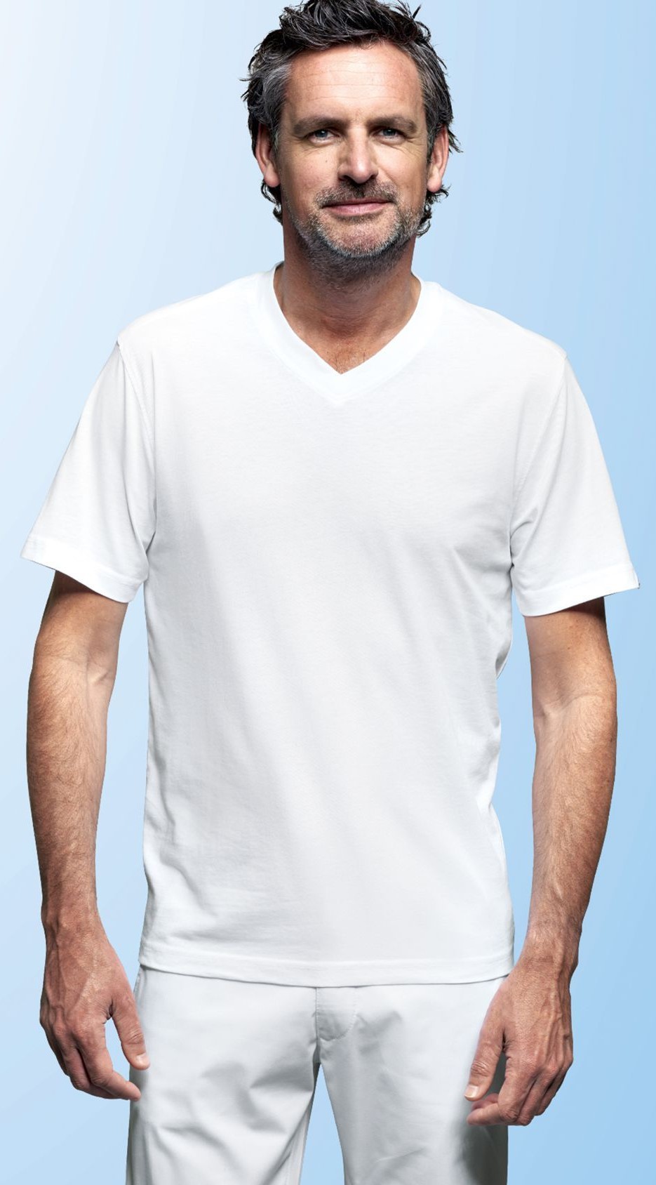 Made for you: shrink and keep its shape & boil-proof, shoulder reinforcement, V-neck, regular fit.