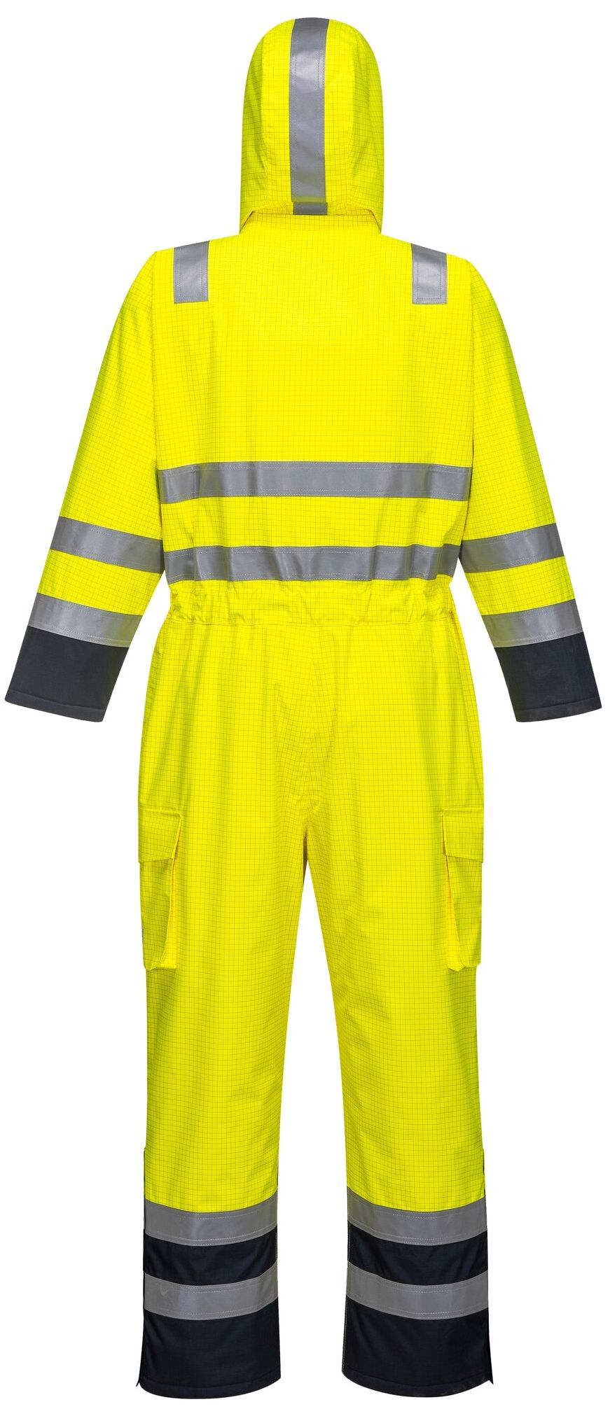 A flame retardant premium protective suit that combines high visibility, chemical resistance, antistatic properties, watererdiresistance and breathability for your protection. Specifically designed for the oil and gas industry, this jumpsuit is packed with features such as:quick opening weather protection strip, fully lined, stowable hood for maximum comfort and flexibility.two large leg pockets and concealed cell phone pocket for extra storage.side opening with zipper on legs makes dressing and undressing easier.shoulder reflex strip for maximum visibility and protection.Bizflame Rain Protective Clothing This series offers extensive protection with certified clothing according to the following standards: EN ISO 20471 Warning protection, EN343 Waterproof and breathable, EN ISO 14116 Flame retardant, EN1149 Antistatic.Flame retardant This industry-leading collection offers multi-standard protection for hazardous areas. These state-of-the-art products are the result of many years of exp