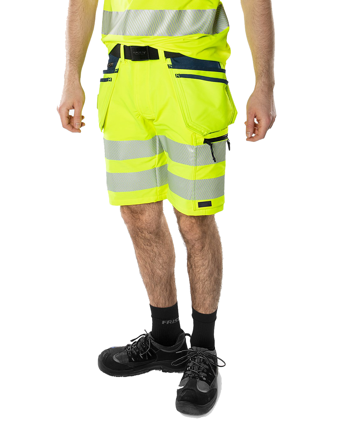 Sustainable, high-visibility artisan stretch shorts made from bio-based and recycled materials. Full 4-way stretch and additional stretch panels at the waistband offer excellent comfort and freedom of movement. With EPD (Environmental Product Declaration). Concept: Stiby